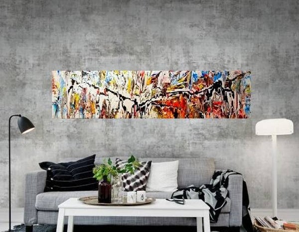 Te koop orgineel en kleurrijk schilderij. Geschilderd door M. van Vliet, Gouda 2020. Breed formaat. Gesingeerd en voorzien van echtheid certificaat. Geschilderd op hergebruikt houten paneel, in dik relief. De randen (5 cm dik) zijn zwart afgewerkt. Geschilderd in acryl en afgewerkt met U.V. bestendige hoogglans lak. Mocht u geinterresseerd zijn in dit schilderij, dan bent altijd van harte welkom om het schilderij te komen bekijken in de M³galerie. Doesburgweg 7 te gouda.