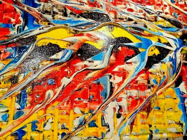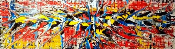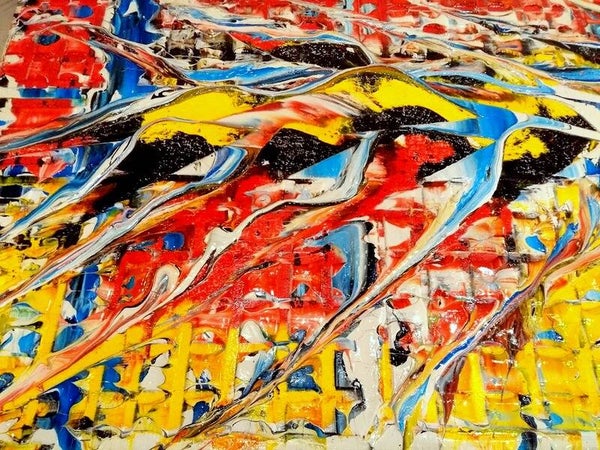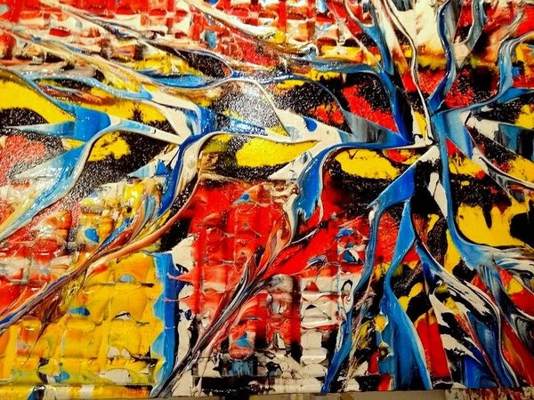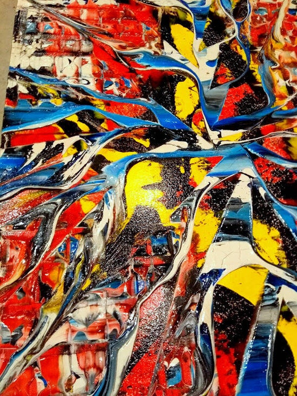 Te koop orgineel en kleurrijk schilderij. Geschilderd door M. van Vliet, Gouda 2020. breed formaat. Gesingeerd en voorzien van echtheid certificaat. Geschilderd op hergebruikt houten paneel, in dik relief. De randen (5 cm dik) zijn zwart afgewerkt. Geschilderd in acryl en afgewerkt met U.V. bestendige hoogglans lak. Mocht u geinterresseerd zijn in dit schilderij, dan bent altijd van harte welkom om het schilderij te komen bekijken in de M³galerie. Doesburgweg 7 te gouda.